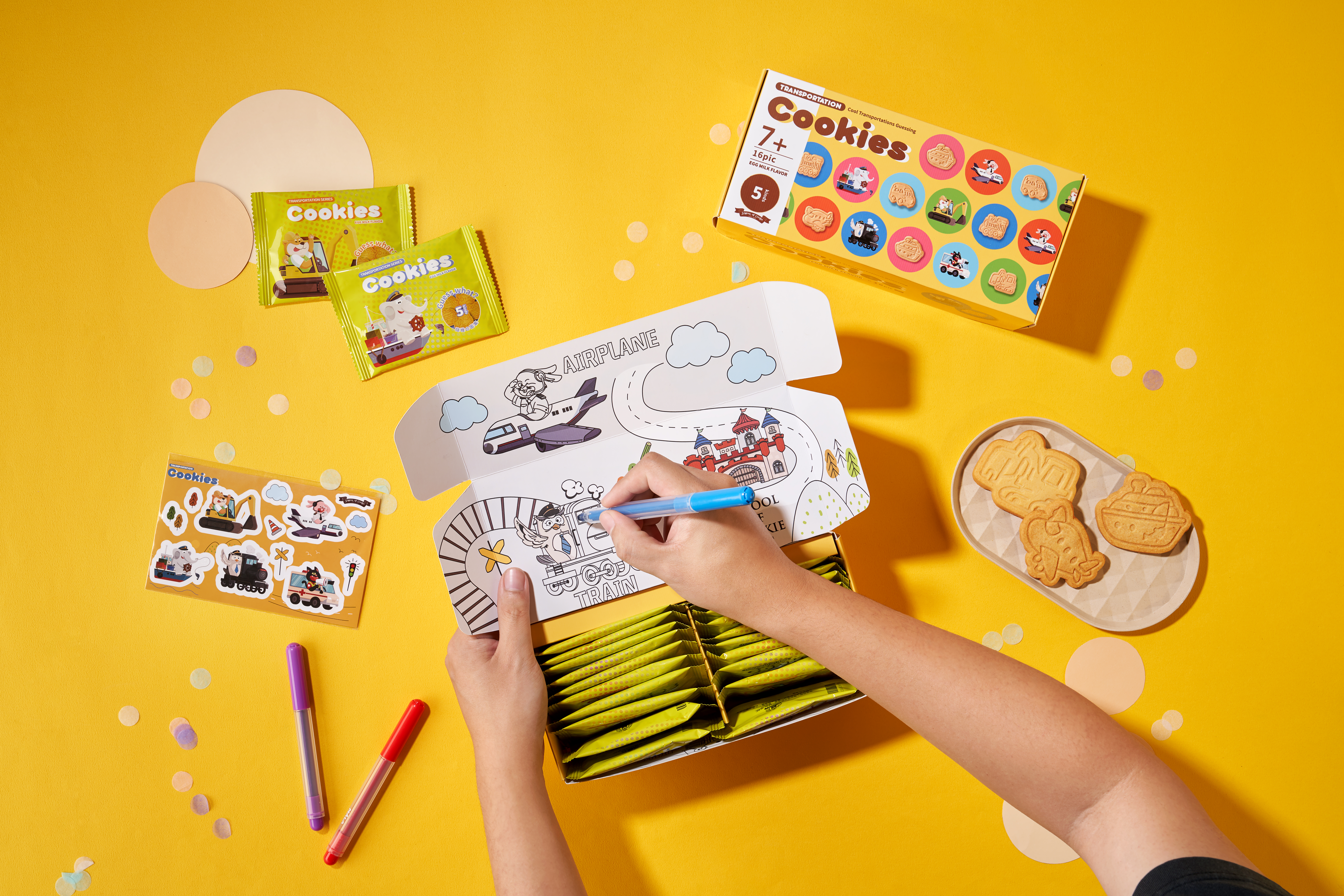 內盒特別設計為著色圖,還有搭配附贈的獨家貼紙,讓你邊吃邊玩更有趣。