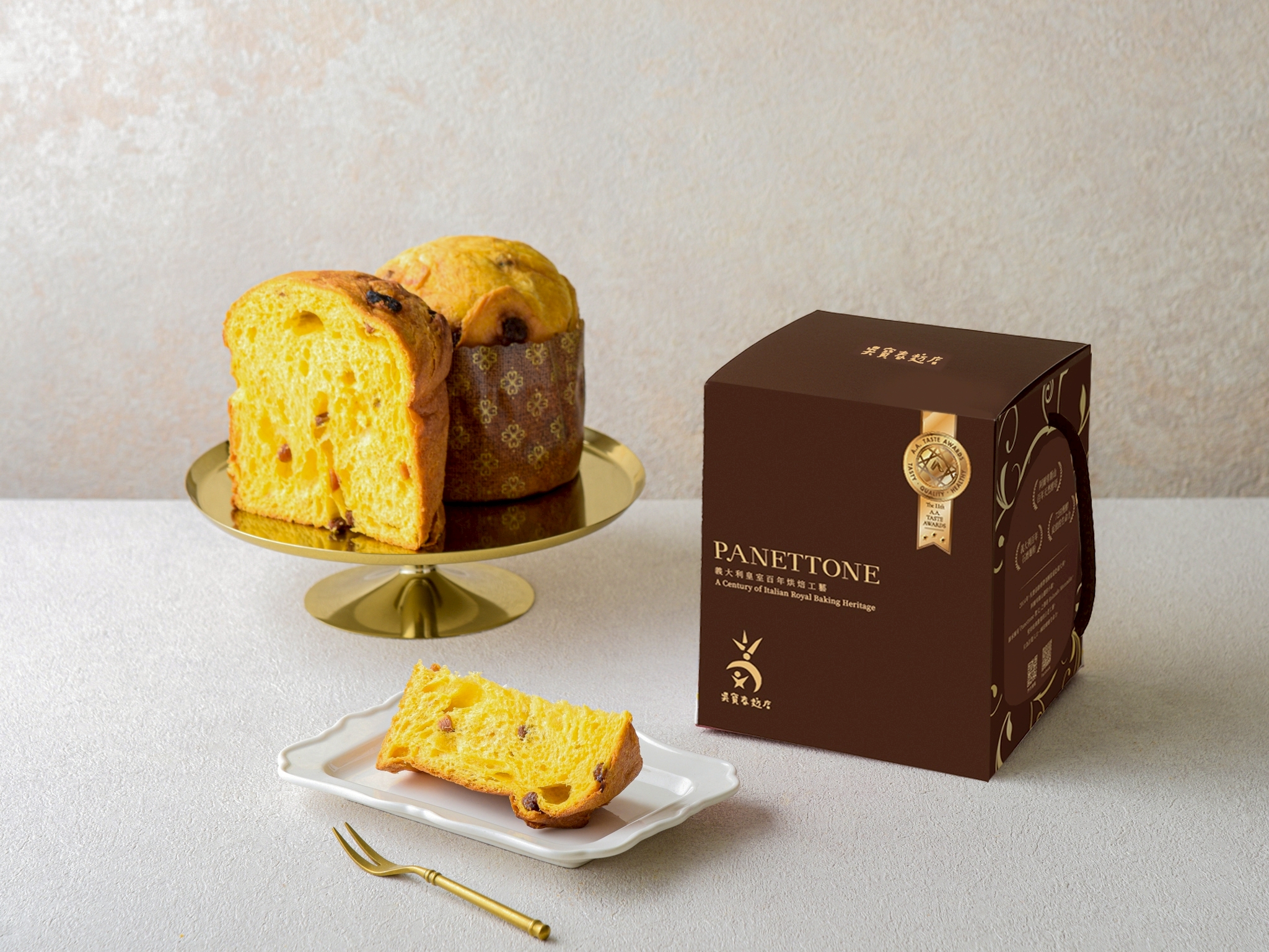 食材嚴選香氣濃郁義大利柑橘乾與吐魯番窪地葡萄乾、AA級蛋黃,使整體麵包香氣甜美,奶香濃郁,像蛋糕般柔軟可口的義大利皇家經典麵包。