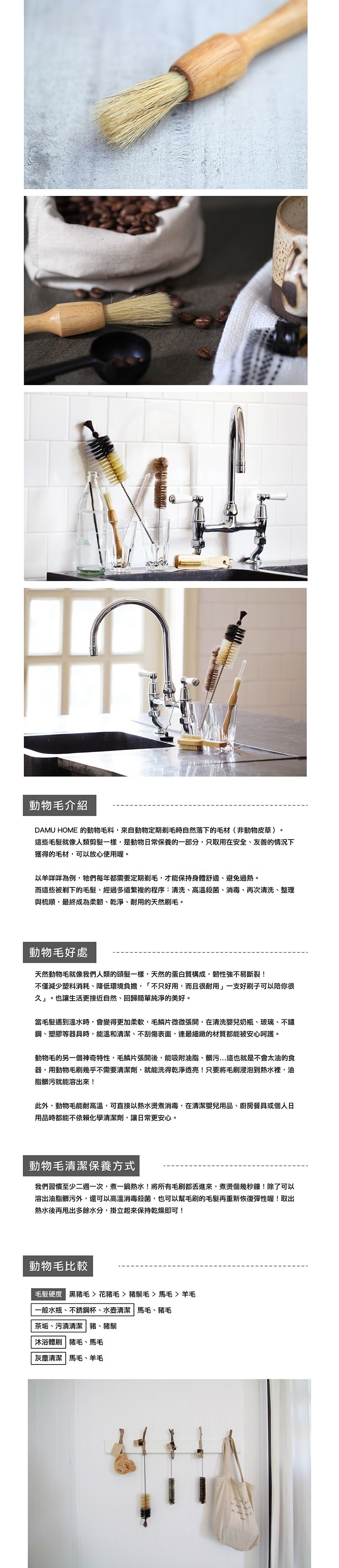 豬鬃毛遇水後會變得柔軟,不刮傷金屬或塑膠材質表面。