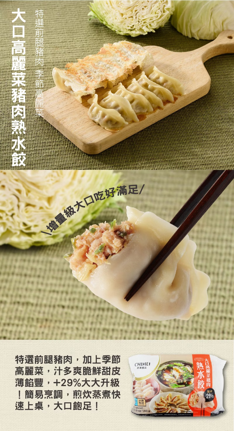 【大口高麗菜豬肉熟水餃】(約30粒)