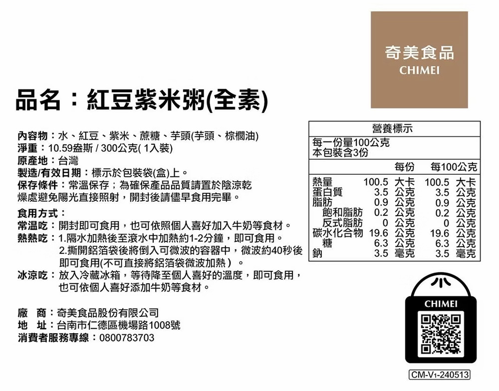 採用屏東在地紅豆與紫米,富含鐵質與膳食纖維
