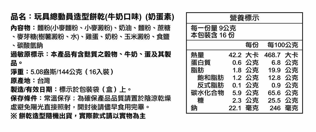 【玩具總動員造型餅乾】(牛奶口味)