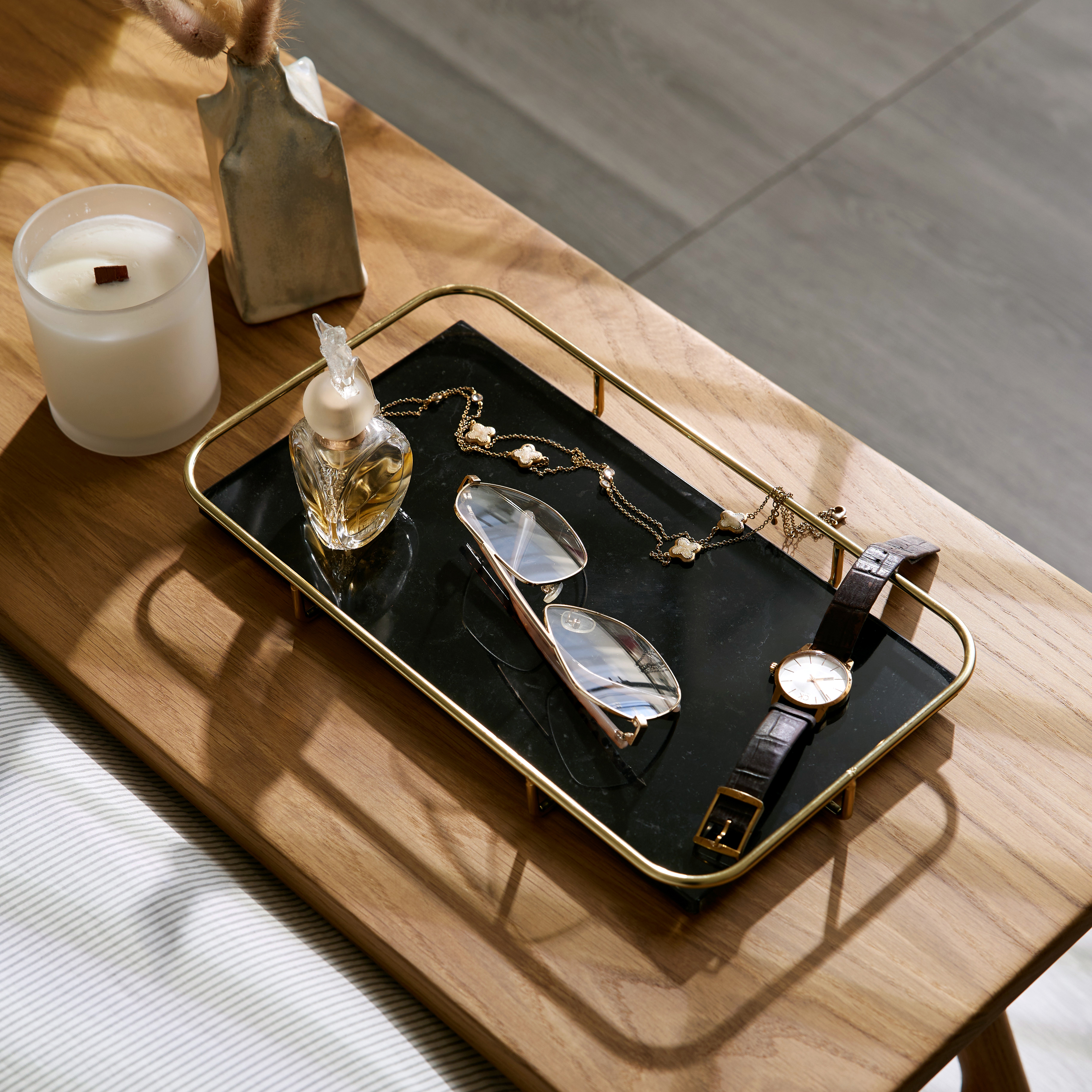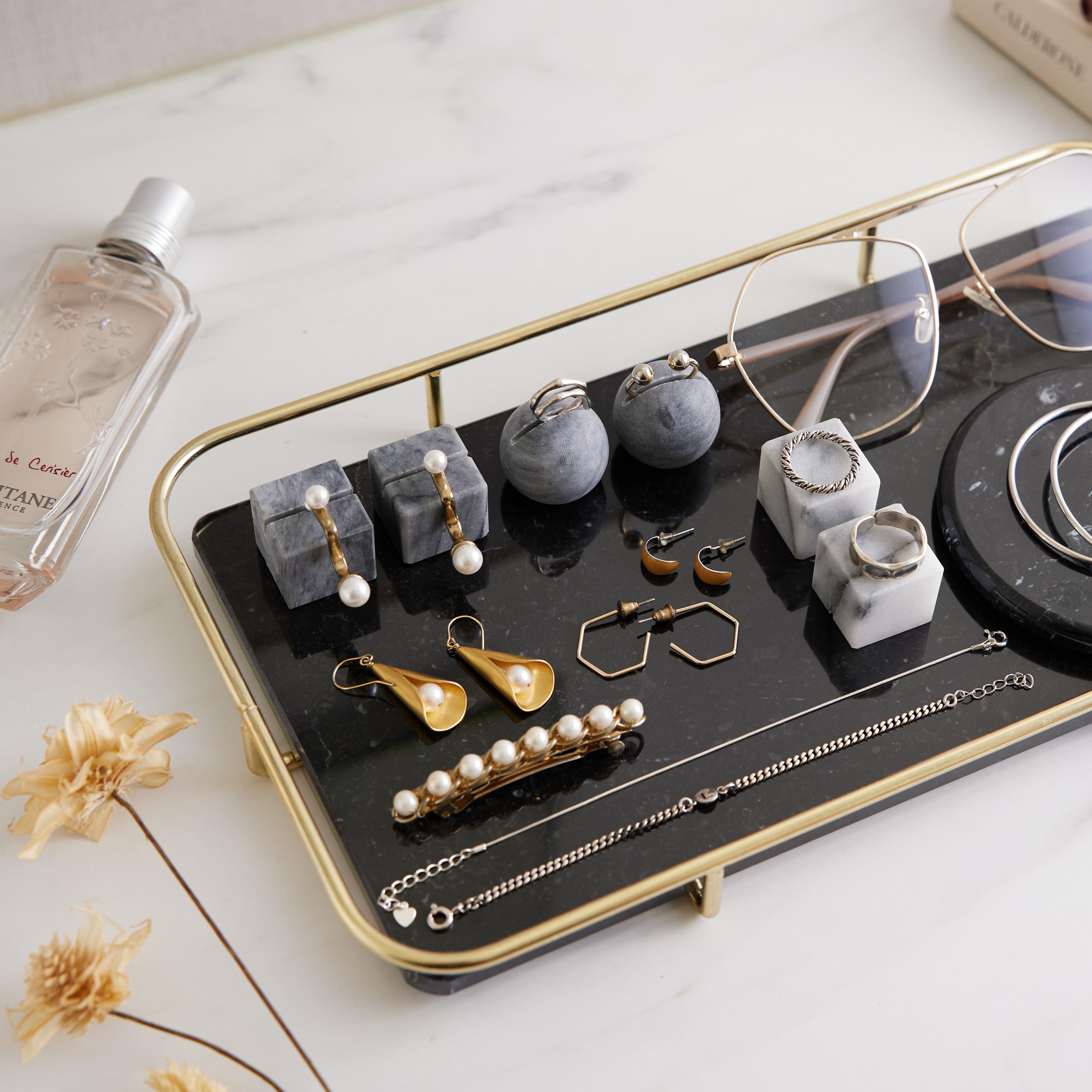 金色邊框搭配沈穩的黑色大理石,一回家卸下您的耳環、手錶、戒指與外在的煩惱,讓大理石方盤為您接住一切的疲憊。