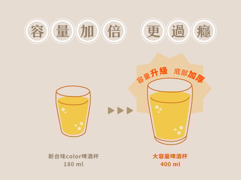 從 180ml 加大到 400ml,啤酒、氣泡飲一次裝好裝滿,