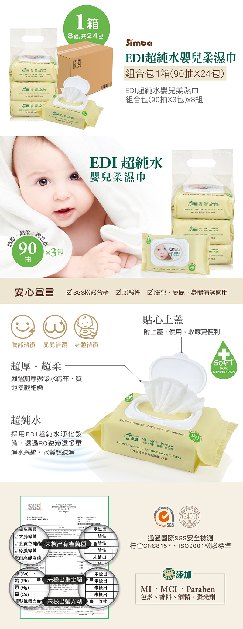 EDI超純水嬰兒柔濕巾組合包一箱(90抽X24包)
