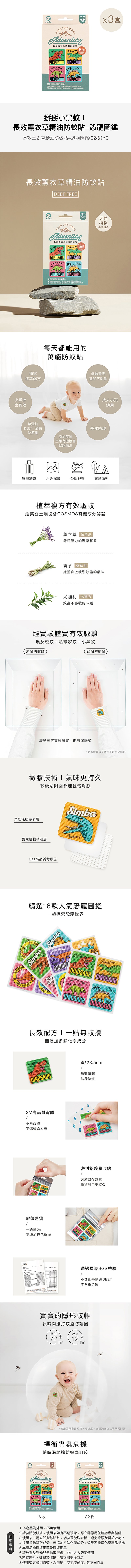 掰掰小黑蚊!長效薰衣草精油防蚊貼-恐龍圖鑑(32枚*3盒)
