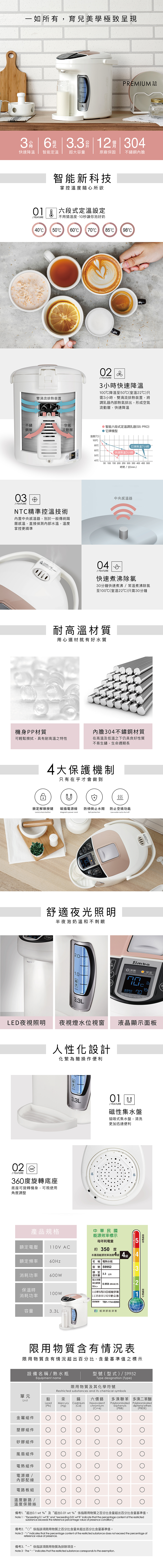 1. 六段式定溫設定40/50/60/70/85/98℃