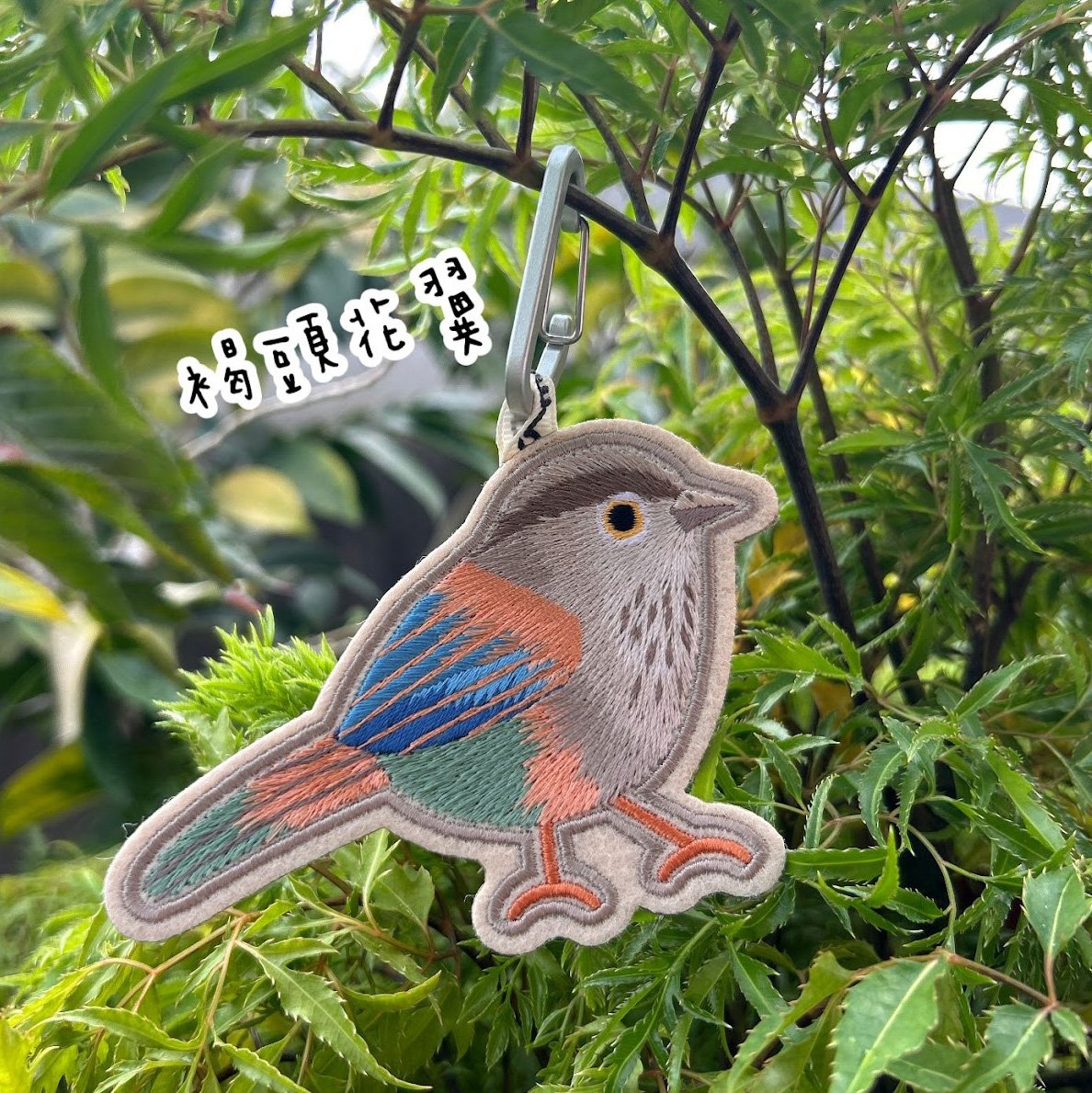 褐頭花翼,台灣特有的群居小鳥。這款與林業及自然保育署聯名合作的刺繡吊牌,將林間鳥群的親密氛圍化為細膩繡線,提醒我們在守護自然的同時,也珍惜身邊的相伴。每件商品皆內嵌晶片,輕觸手機即可開啟褐頭花翼的生態知識。