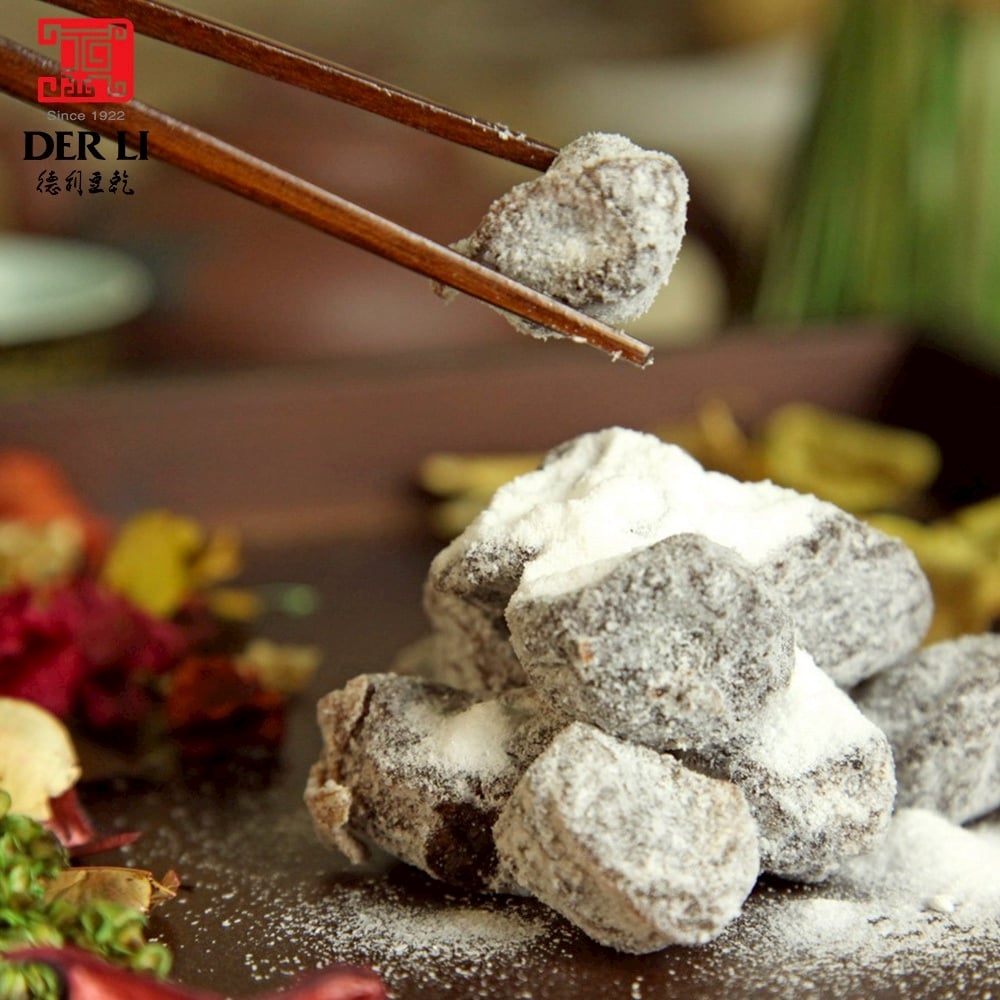 以台灣在地食材,嚴選青梅為原料。第三代負責人廖文雄在民國六十年研發出來的產品,如今已是德利的招牌產品之一,梅子都是醃製一年以上的,採用嚴選上等青梅,作為梅製品的原料,堅持傳統製法,將紫蘇梅加以改良,先脫鹹加糖再烘烤,白梅就這樣誕生。雪白的葡萄糖衣包覆著,酸酸甜甜,是閒暇之餘解嘴饞的零嘴!更是最佳伴手禮!