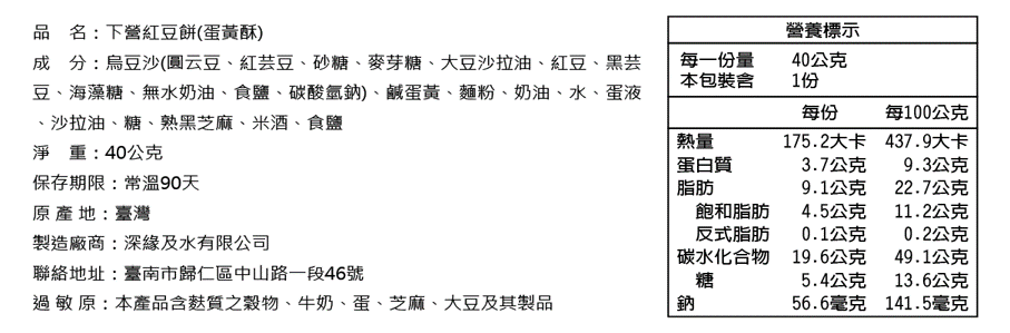 內容物: 深緣鳳梨酥*5、下營紅豆餅(蛋黃酥)*5、綜合果乾餅*1、花蓮蜜香紅茶罐*1