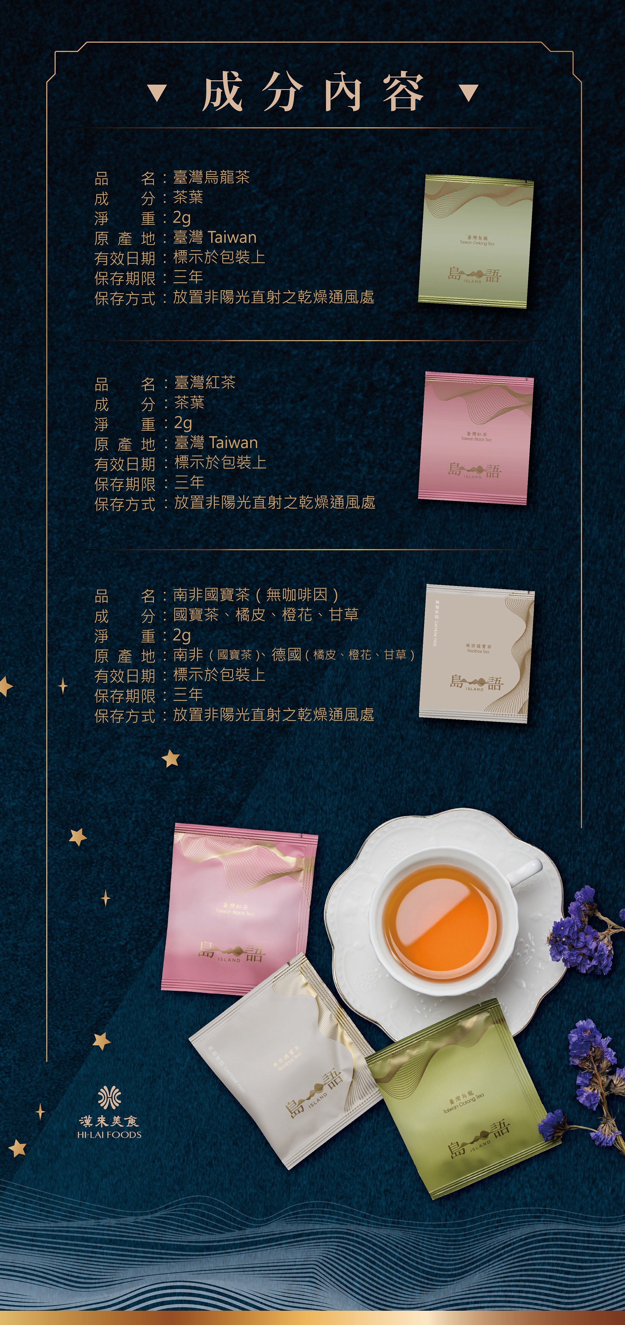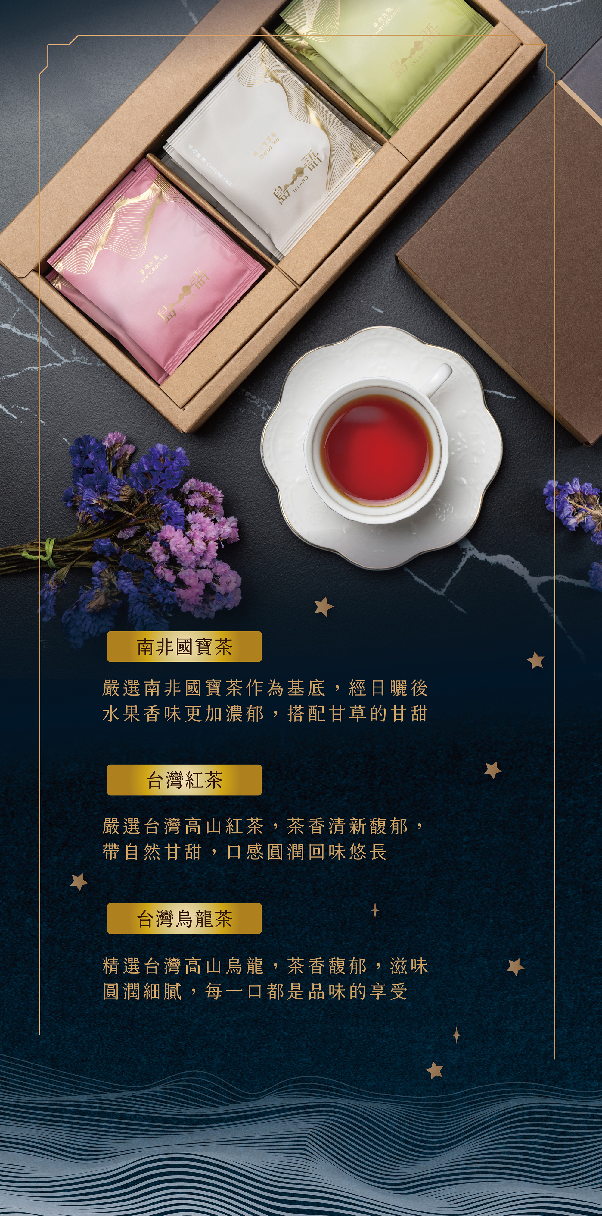 ●規格:南非國寶茶包*7入、台灣紅茶包*7入、台灣烏龍茶*7入