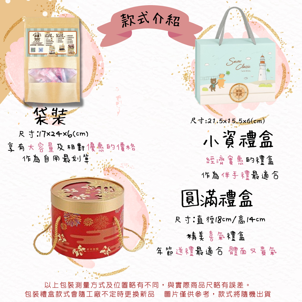 ☑️ 部分蜜餞類、水果乾及餅乾糖果等商品採用食品級夾練袋包裝,避免一次性食用不完的情形。