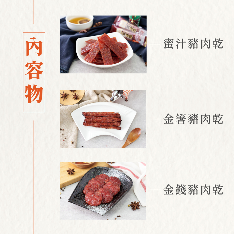 (內容物:蜜汁豬肉乾*1、蜜汁豬金箸*1、蜜汁金錢豬*1)