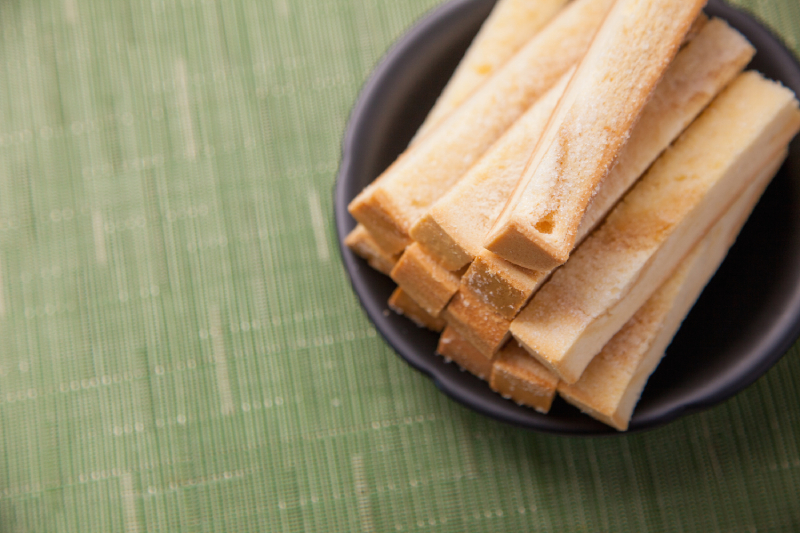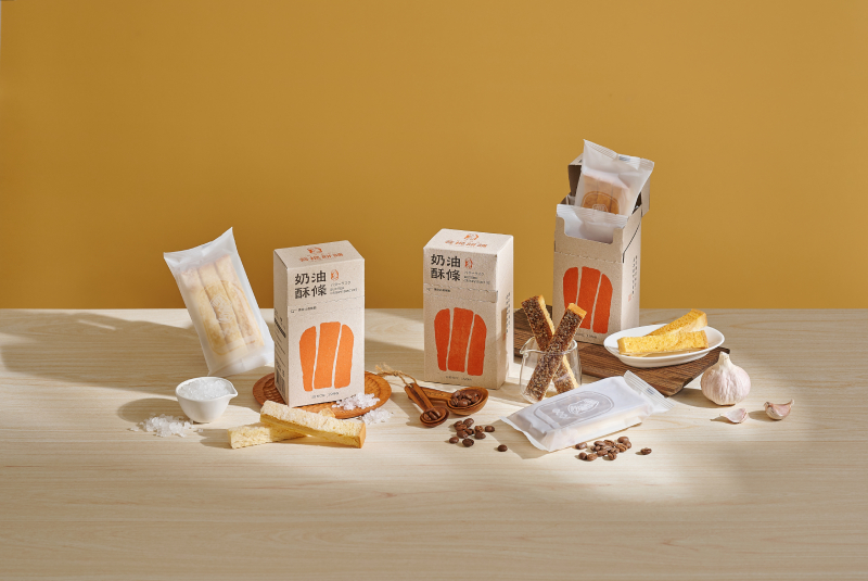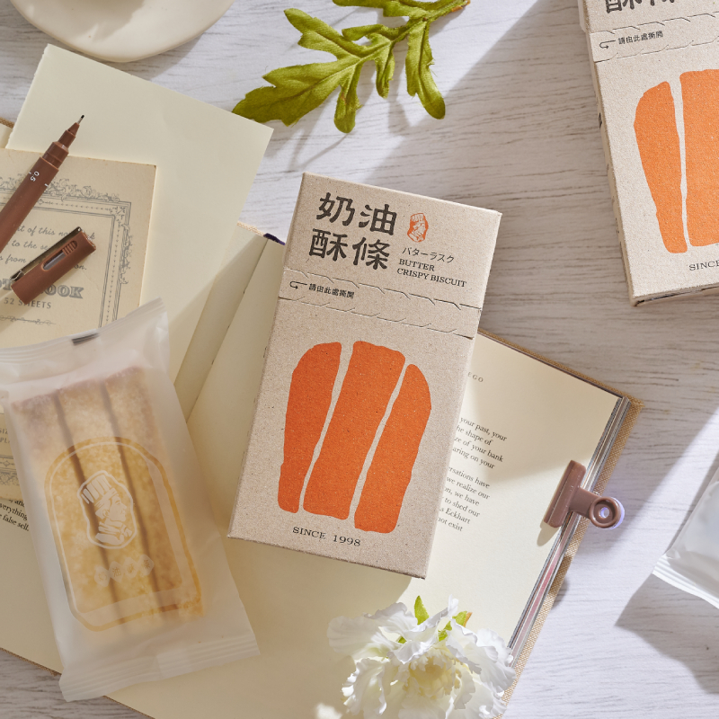 全國首創奶油酥條,以自製牛奶吐司,搭配紐西蘭濃醇安佳奶油,低溫烘烤而成,口感外脆內酥。