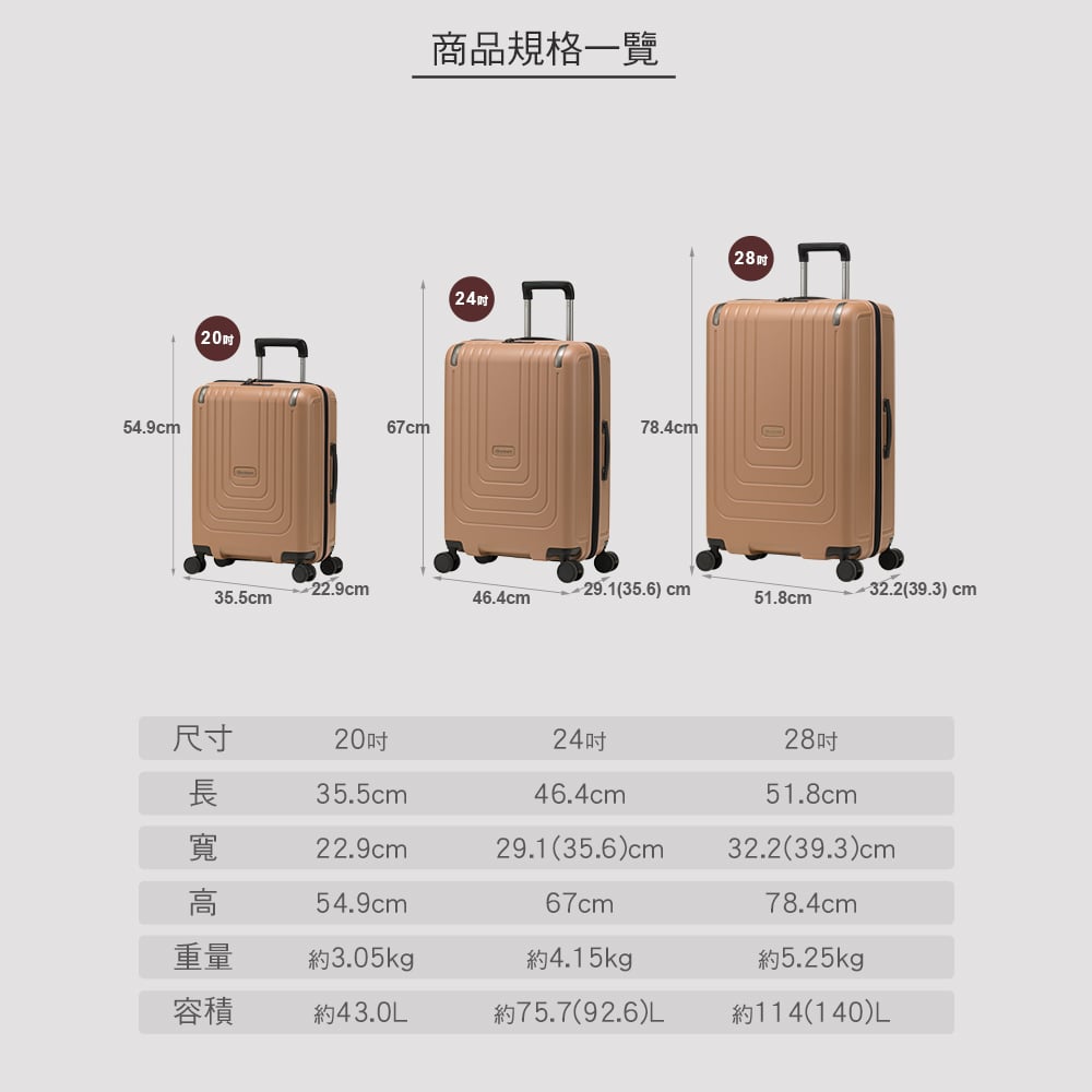 24吋&28吋另加設可擴充拉鍊,可彈性調整空間大小