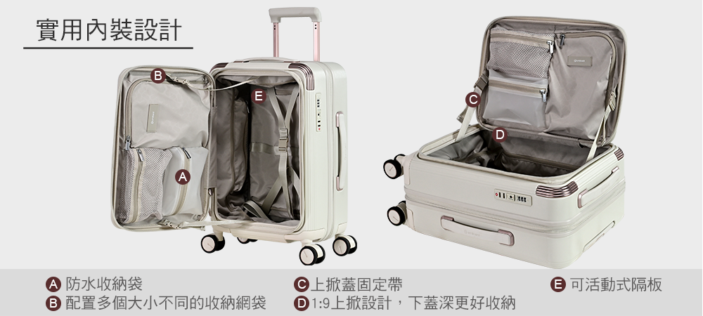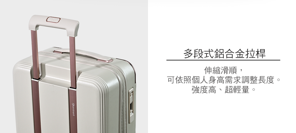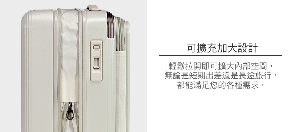 ◆ 24吋及28吋採用寬拉桿設計,並添加多處置物掛勾。