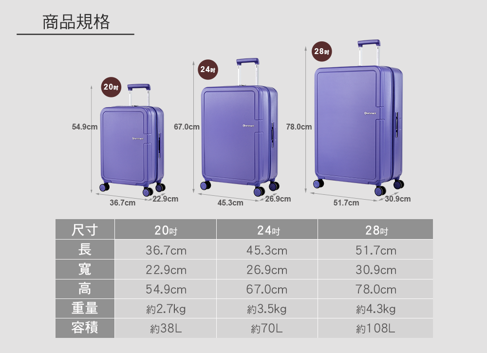 規格:約 67 x 45.8 x 26.9 cm;約 3.5 kg; 約 70 L