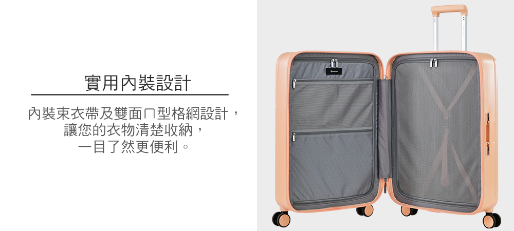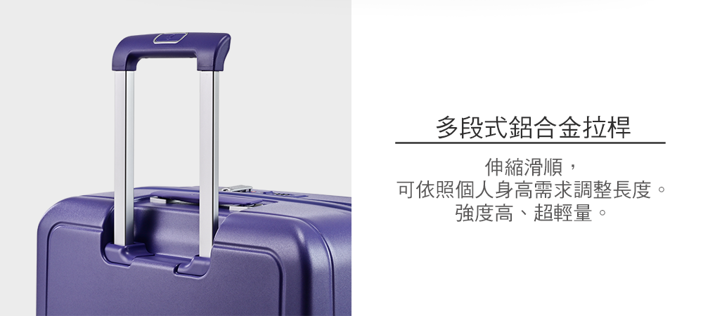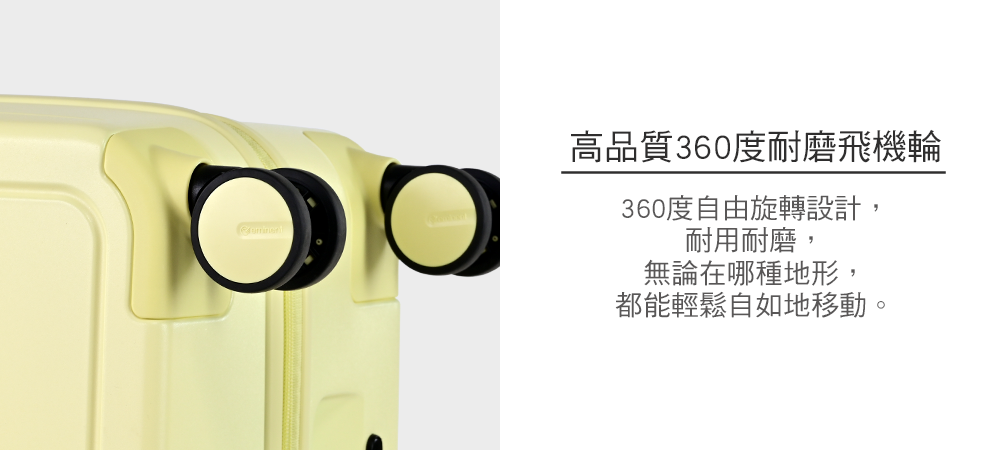 俐落大方的平整外型結合柔和圓滑曲線,搭配四款活潑亮眼的馬卡龍色系,行李箱也搖身一變成為時尚單品。