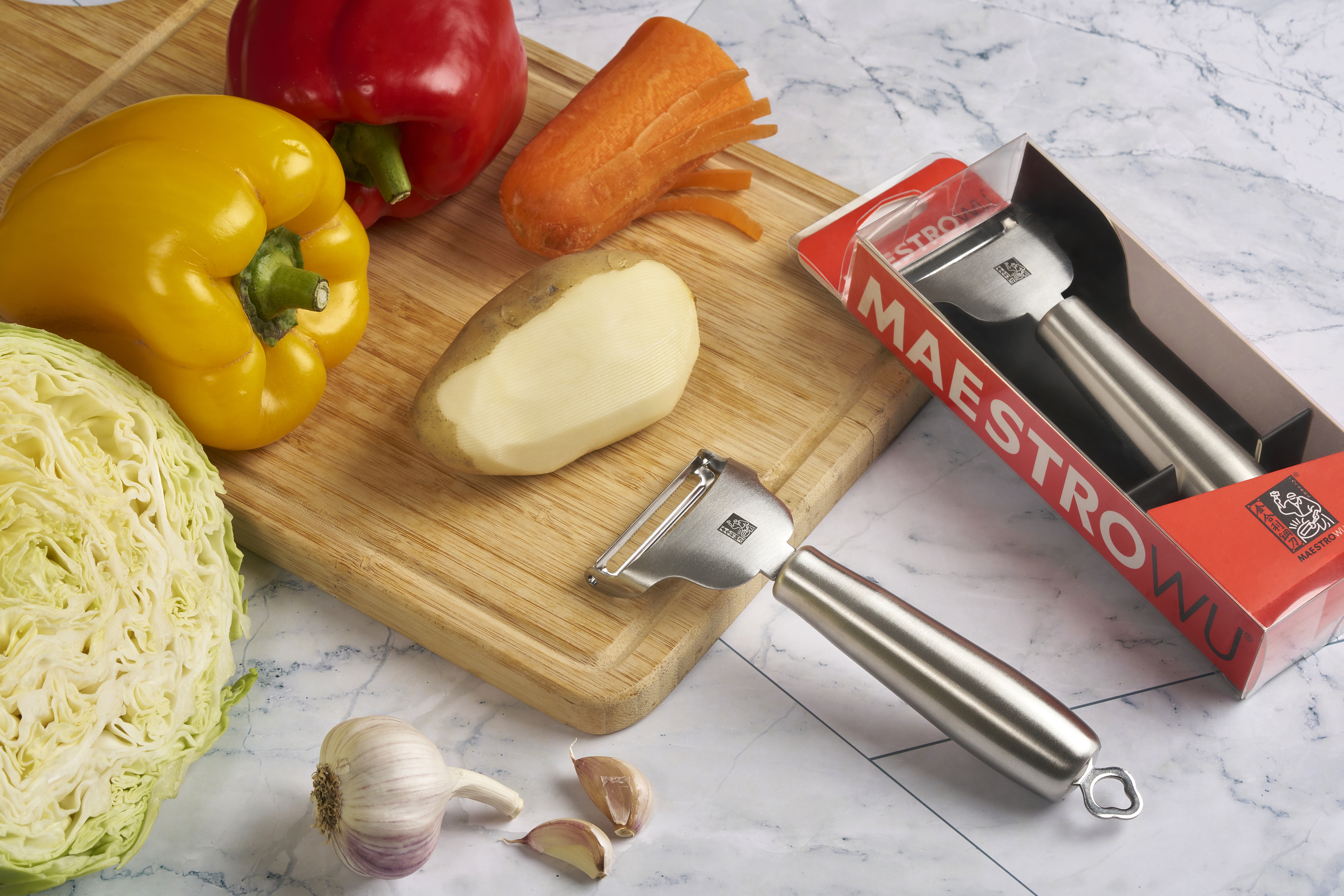 以簡約俐落的金屬線條呈現現代工業美學,結構穩定耐用,削皮順暢不卡料,讓備料變得輕鬆流暢。從蔬菜到水果,皆能精準薄削,保留食材完整度與口感。