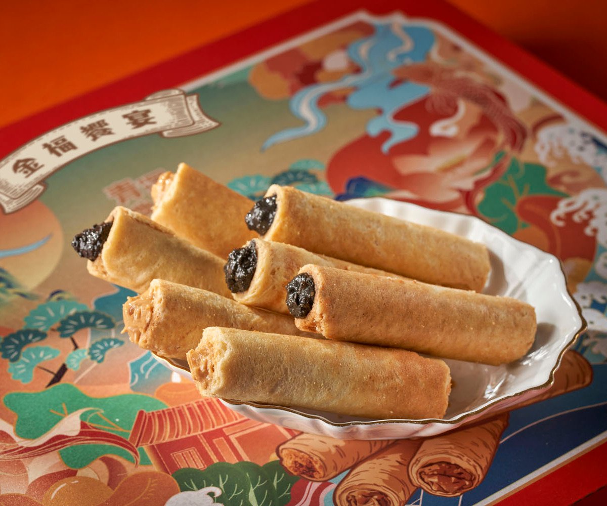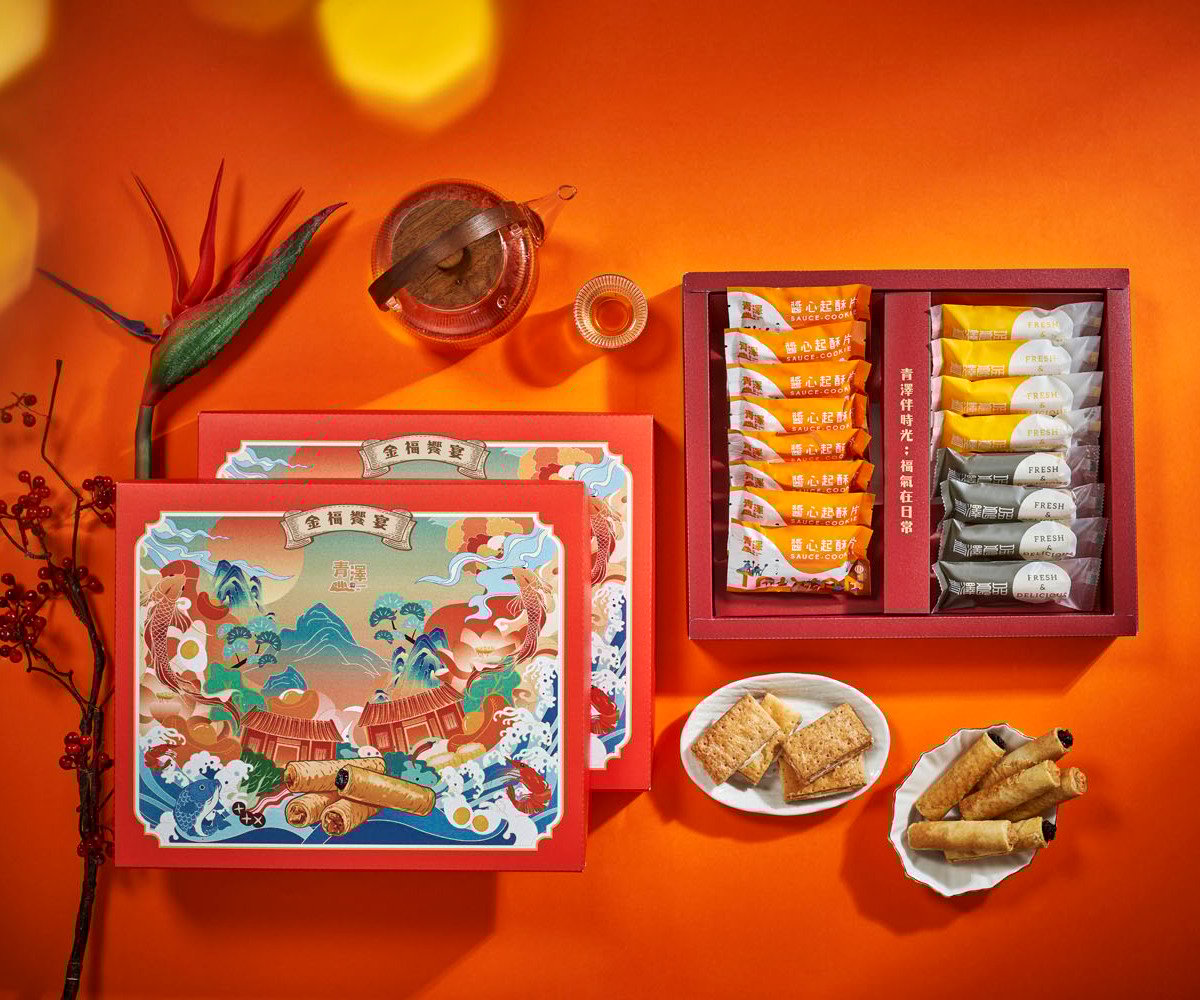 以 醬心起酥片 搭配濃香雙口味蛋捲,呈現多層次又不膩口的分享禮盒。從第一口起酥的細緻酥鬆開始,到花生與芝麻蛋捲的香氣接力,讓節慶時刻變得更加充滿儀式感。
