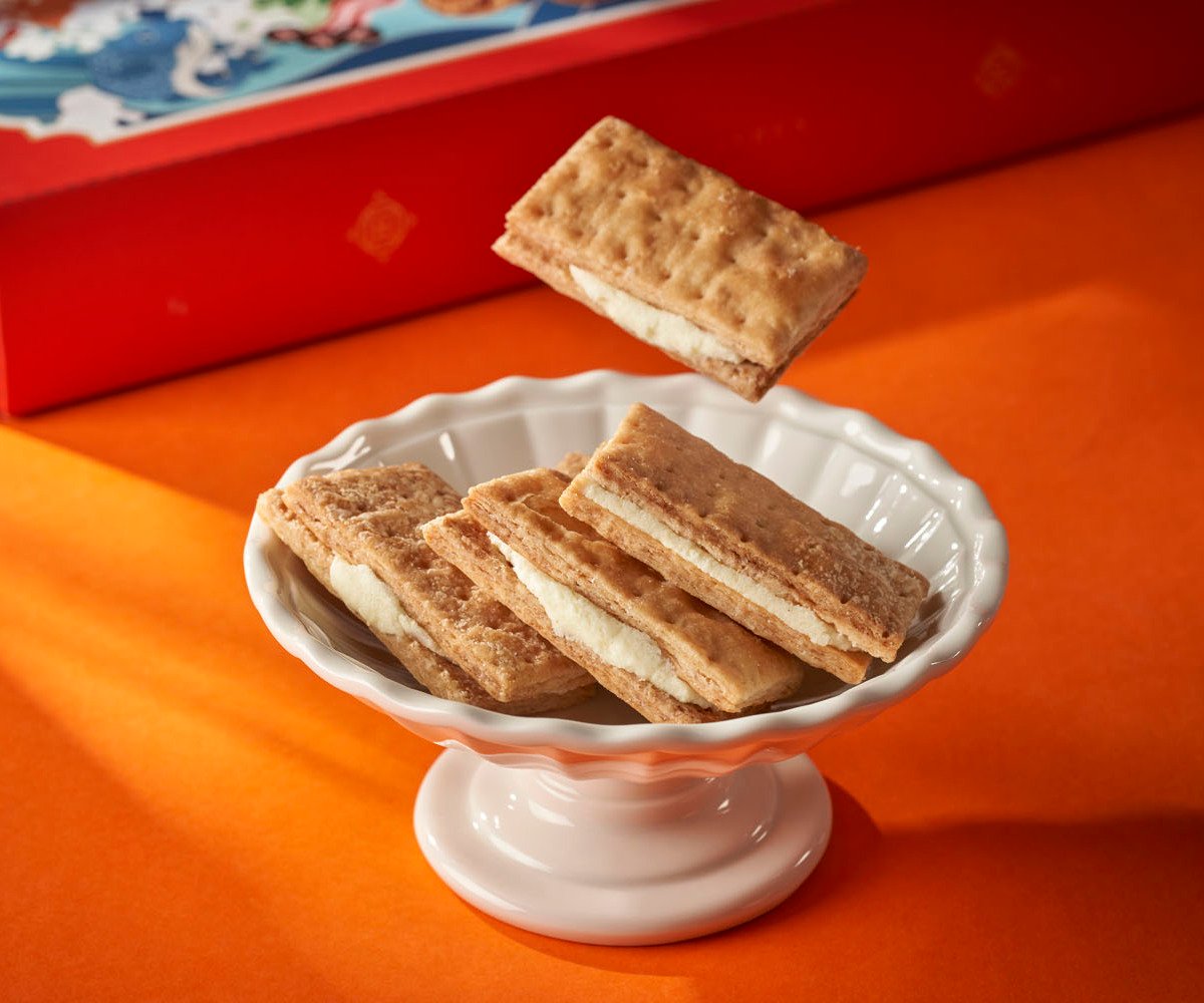 選用奶油夾餡、香氣輕盈的起酥層,入口即碎、香氣迅速綻放,是最容易讓人一片接一片的人氣點心。
