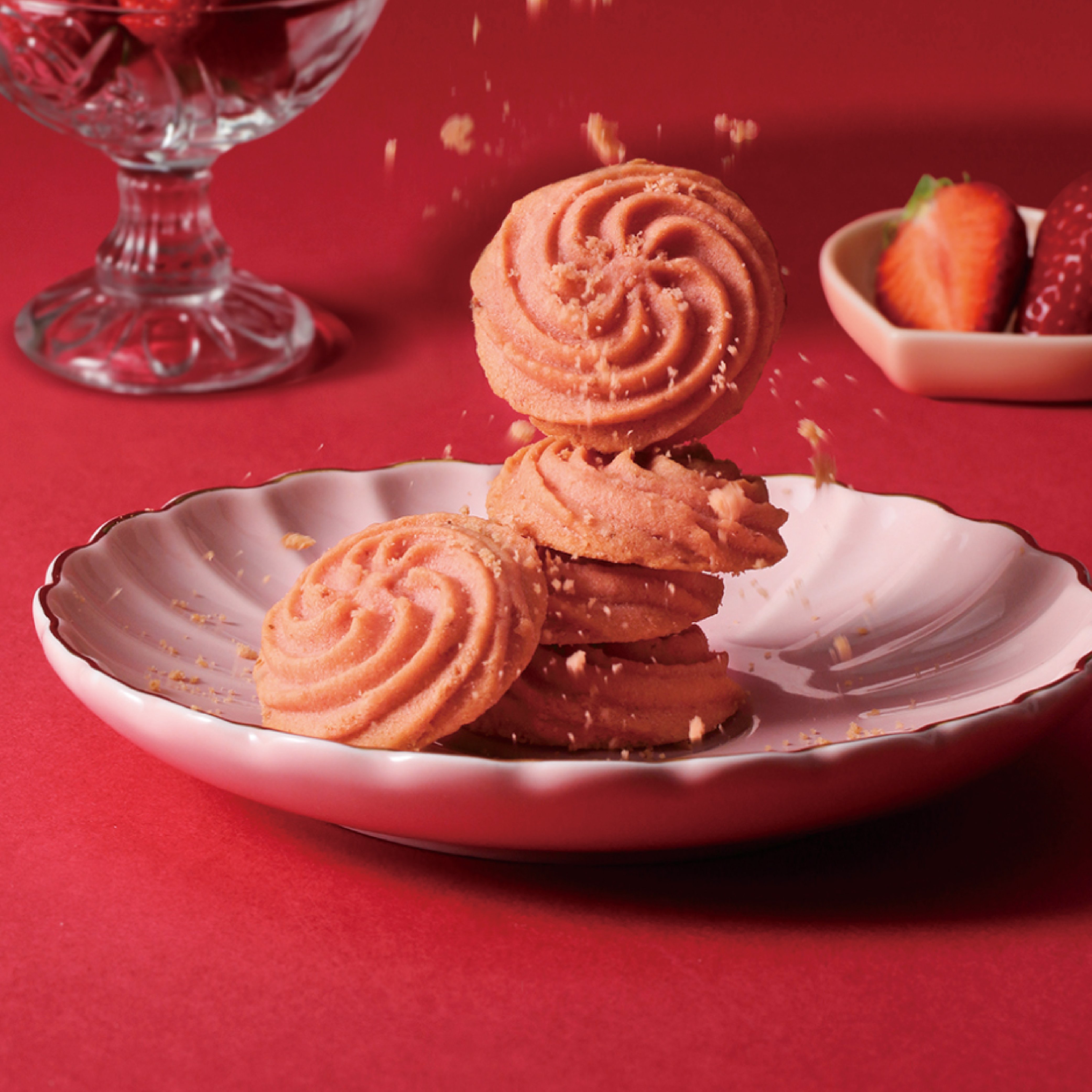 成份:天然發酵奶油、麵粉、糖、玉米澱粉、草莓果乾、草莓粉、蛋、奶粉、甜菜根粉(紅甜菜濃縮汁、麥芽糊精)