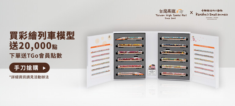 「700T列車模型十二輛組-彩繪版II」更是鐵道迷珍品,以精緻細膩工藝完美呈現列車特色,每組還附有獨立序號卡及獨家聯名陶瓷保溫杯乙個,極具紀念價值,每組售價25,000元;更好康的是,4/8起於T-Shopping購買即享加碼回饋TGo點數20,000點,可於下次消費折抵!