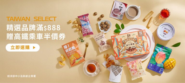 📣 即日起至8/31,凡購買 TAIWAN SELECT 精選品牌商品滿$888(*),加碼贈送限量「高鐵乘車半價電子優惠券」乙張📣